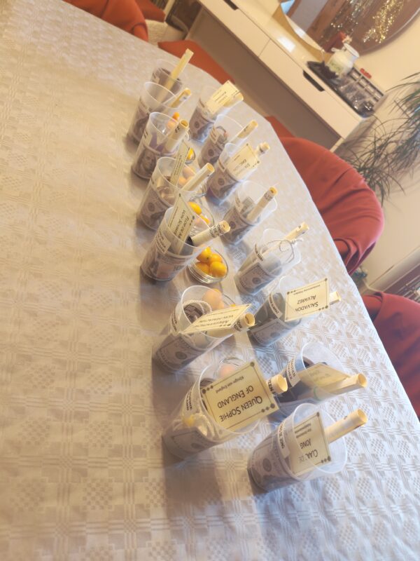 Danke für das tolle Material und die durchdachten Rollen. Wir konnten uns alle sehr gut mit diesen identifizieren und alle haben sich passend verkleidet. (Ich glaube, da hat unser Planungsteam auch bei der Zuteilung der Rollen und Planung des Abends super Arbeit geleistet!) Das war bestimmt nicht das letzte Mal!